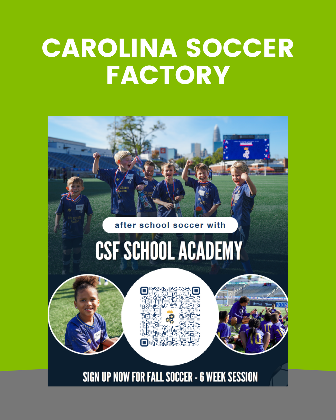 After School Soccer Program - Grades K-5 https://app.amilia.com/store/en/charlottesoccerfactory/api/Activity/Detail?activityId=kMQoOPR
